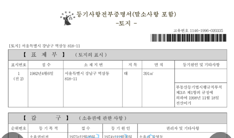 등기부등본은 부동산의 소유권, 권리관계 등을 확인할 수 있는 중요한 서류입니다.