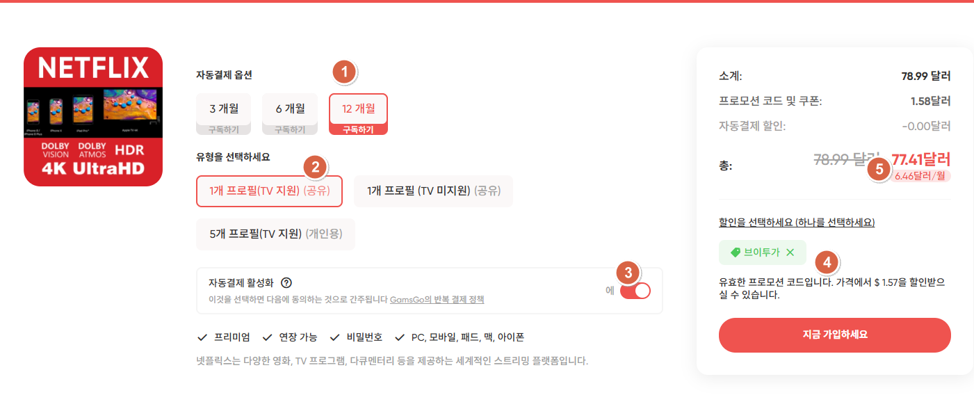 넷플릭스 겜스고에서 프리미엄 할인받기